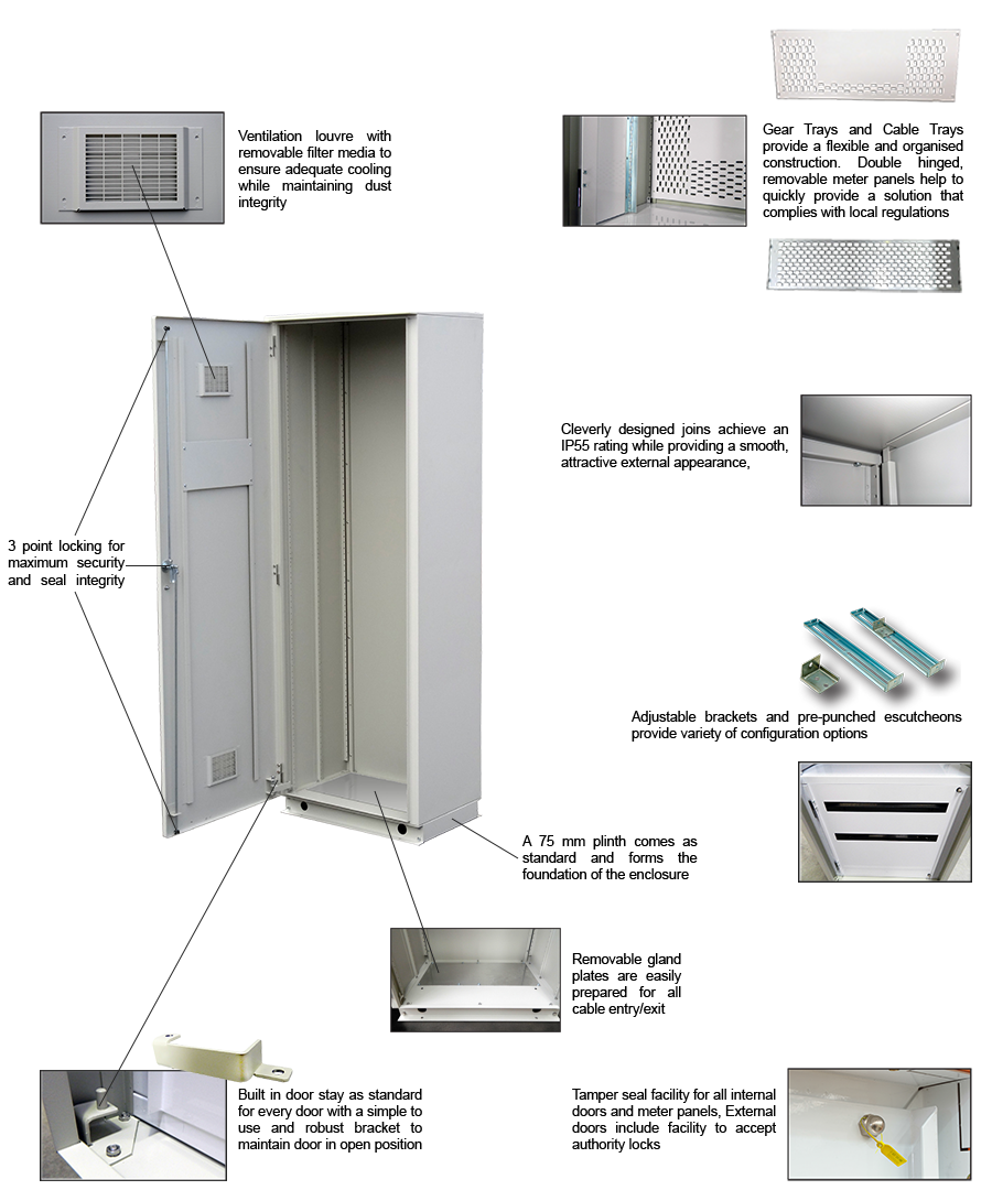 The tier based system means enclosures of any size can be consructed quickly and consistently to suit both Group Metering and Current Transformer (CT) Metering.